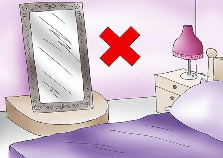 Tuyệt đối không đặt gương đối diện trực diện giường ngủ