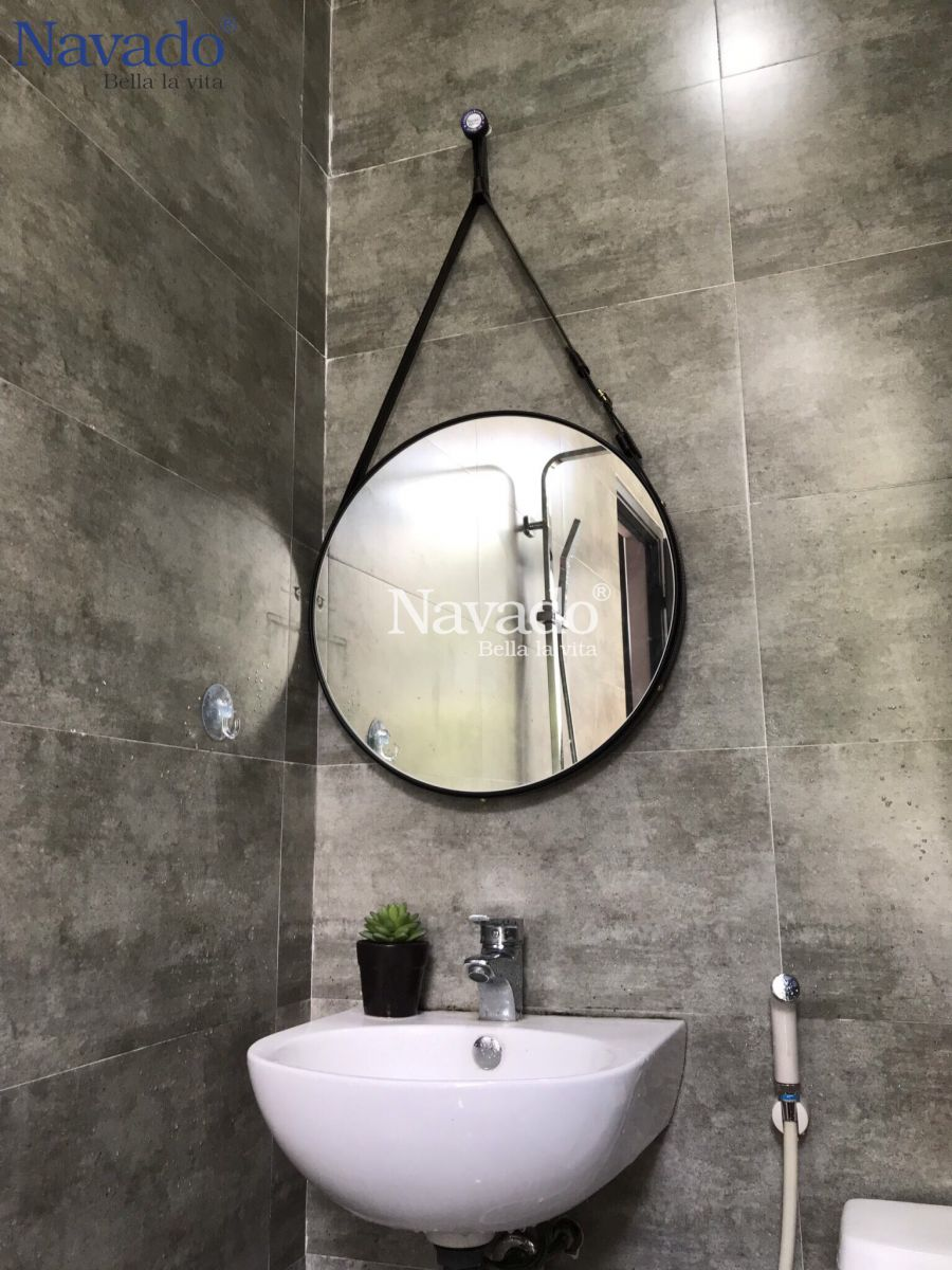 Xóa bỏ sự đơn điệu của những chiếc gương phòng tắm khung nhôm hay nhựa truyền thống, mẫu gương nhà tắm dây da của Navado mang đến hơi thở mộc mạc nhưng vô cùng sang trọng. Nhờ công nghệ phôi gương Bỉ AGC kháng ẩm và lớp da bò được xử lý chống thấm, bạn hoàn toàn có thể yên tâm về độ bền của sản phẩm ngay cả trong môi trường độ ẩm cao. Sợi dây da treo trên nền đá marble hay gạch men tối màu sẽ tạo nên một điểm nhấn tương phản cực kỳ đắt giá.