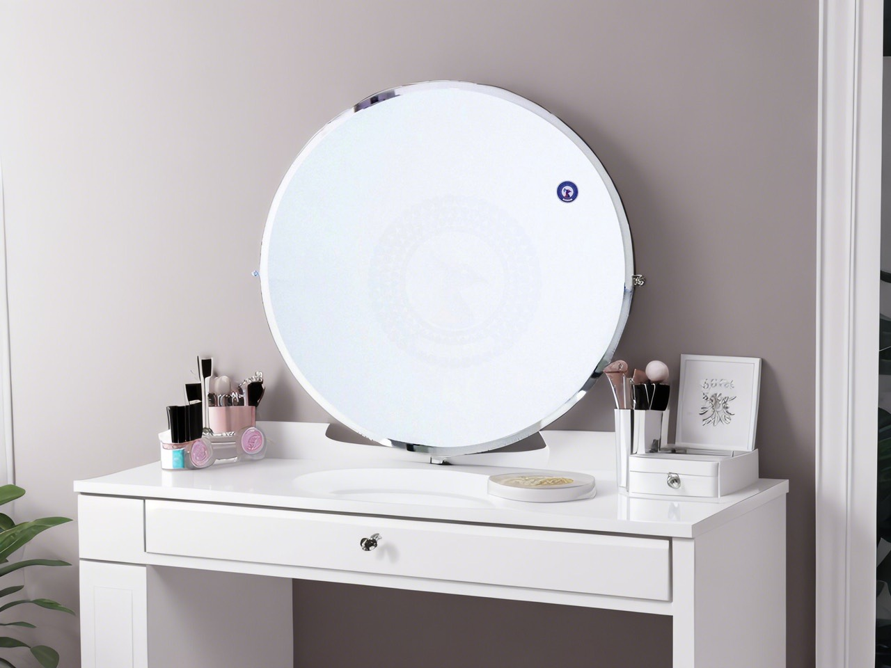 Gương trang điểm hình tròn mài vát để bàn