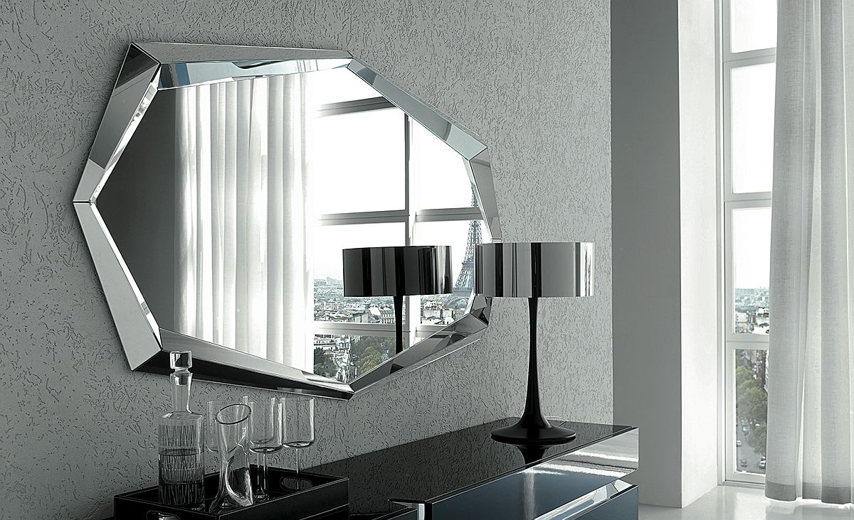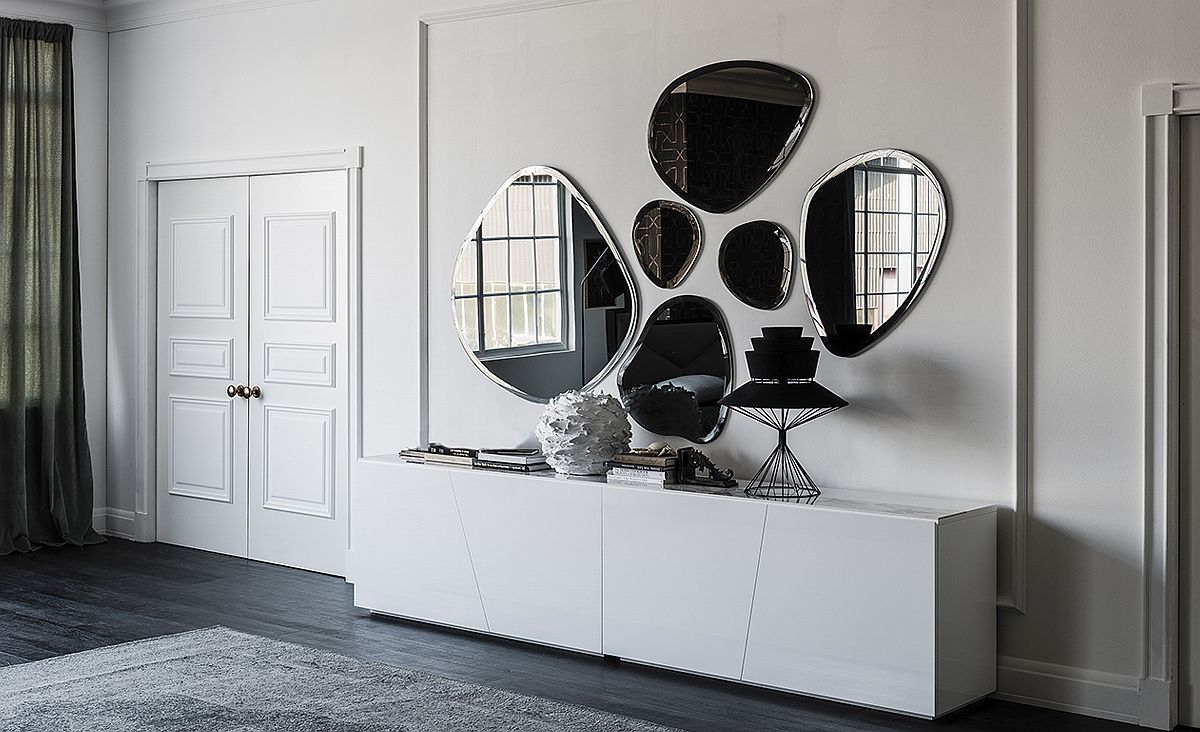 Muốn thêm một mô hình hình học độc đáo, tương phản với nội thất hiện đại, bạn có thể sử dụng gương nhiều hình dạng khác nhau.