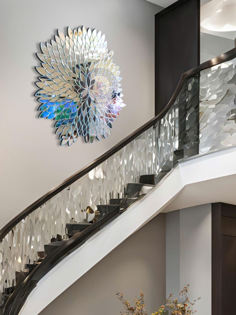Lấy cảm hứng từ vẻ đẹp bất tận của cỏ cây hoa lá, mẫu gương ghép nghệ thuật này của Navado là sự kết hợp hoàn mỹ giữa hơi thở thiên nhiên và kỹ nghệ chế tác thủ công đỉnh cao. Đây là lựa chọn lý tưởng cho những không gian quán cafe, phòng khách hoặc sảnh khách sạn hướng tới phong cách Eco-chic, Tropical hoặc Sang trọng, Tinh tế. Không phải là một tấm gương nguyên khối, tác phẩm này được kết hợp từ hàng chục, hàng trăm "chiếc lá" gương đơn lẻ. Mỗi chiếc lá đều được các nghệ nhân Navado cắt và mài vát cạnh thủ công cực kỳ công phu, sau đó được ghép lại với nhau tạo nên một tổng thể hài hòa, sống động như một tác phẩm điêu khắc ánh sáng.