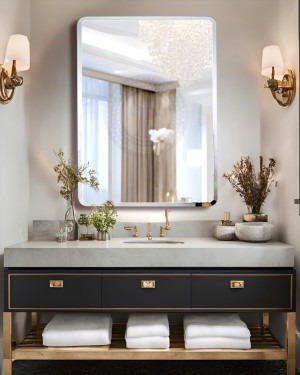 Những mẫu gương khung mạ vàng, bạc mài tay thủ công mang hơi thở Tân cổ điển. Đây là lựa chọn hoàn hảo cho những chủ nhân yêu thích sự quyền quý, biến khu vực vệ sinh thành một không gian Suite xa hoa.